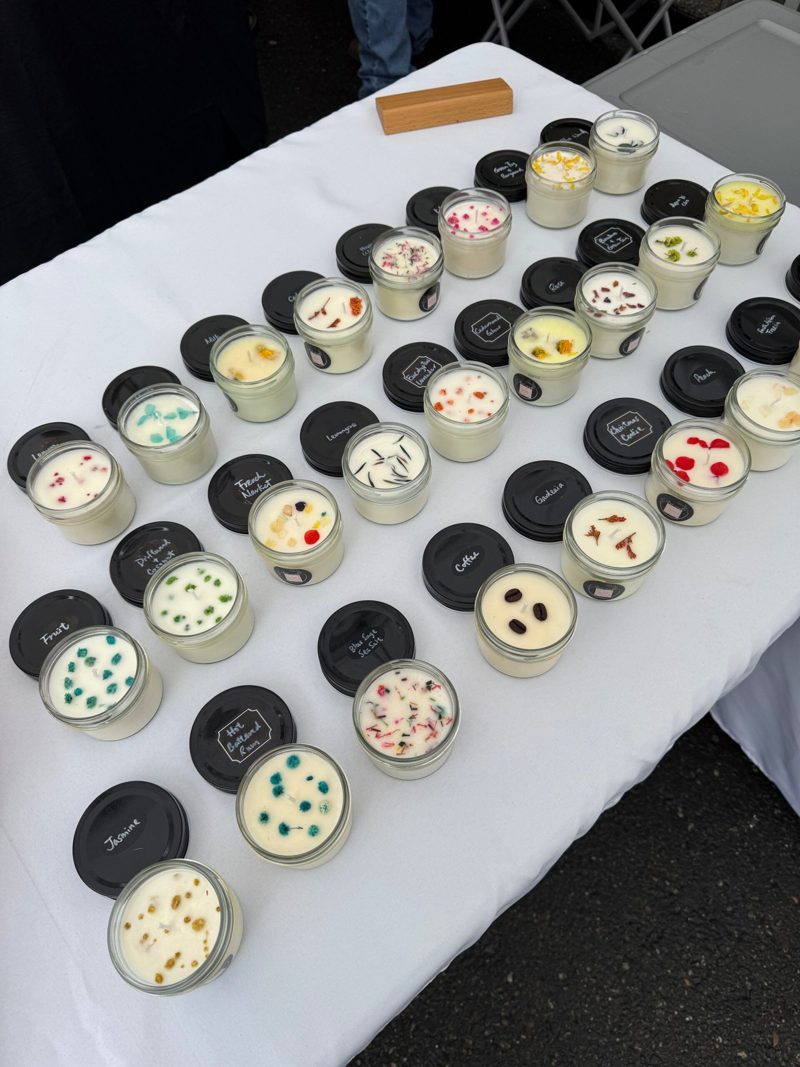 Our brand is a celebration of handcrafted artistry, where my mum and I blend the warmth of scented candles with the delicate beauty of floral design. Each piece is lovingly created by hand, from our vibrant, hand-painted shape candles and meticulously poured jar candles adorned with dried flowers, to our unique jewelry featuring compressed dried blooms and whimsical pipe cleaner flowers. We strive to bring a touch of nature's elegance and handmade charm into your life, offering unique and personalized items that add a special touch to any space or occasion.