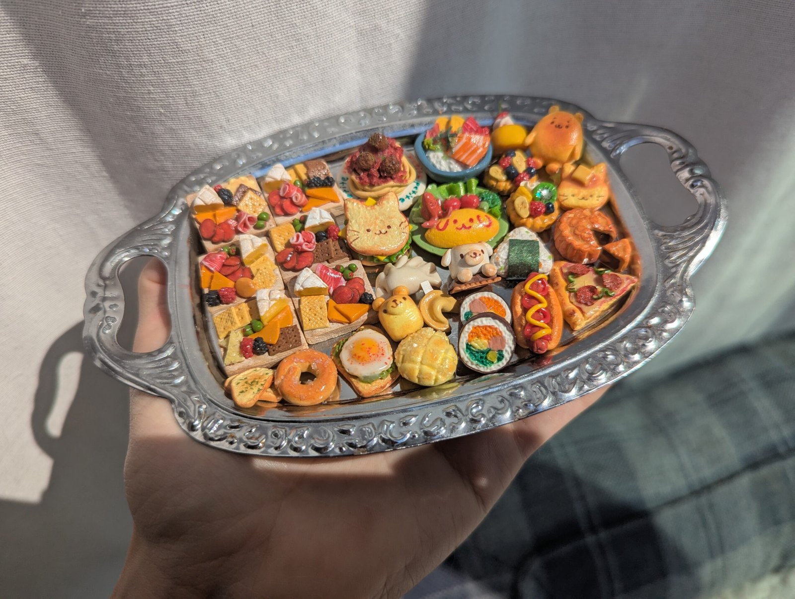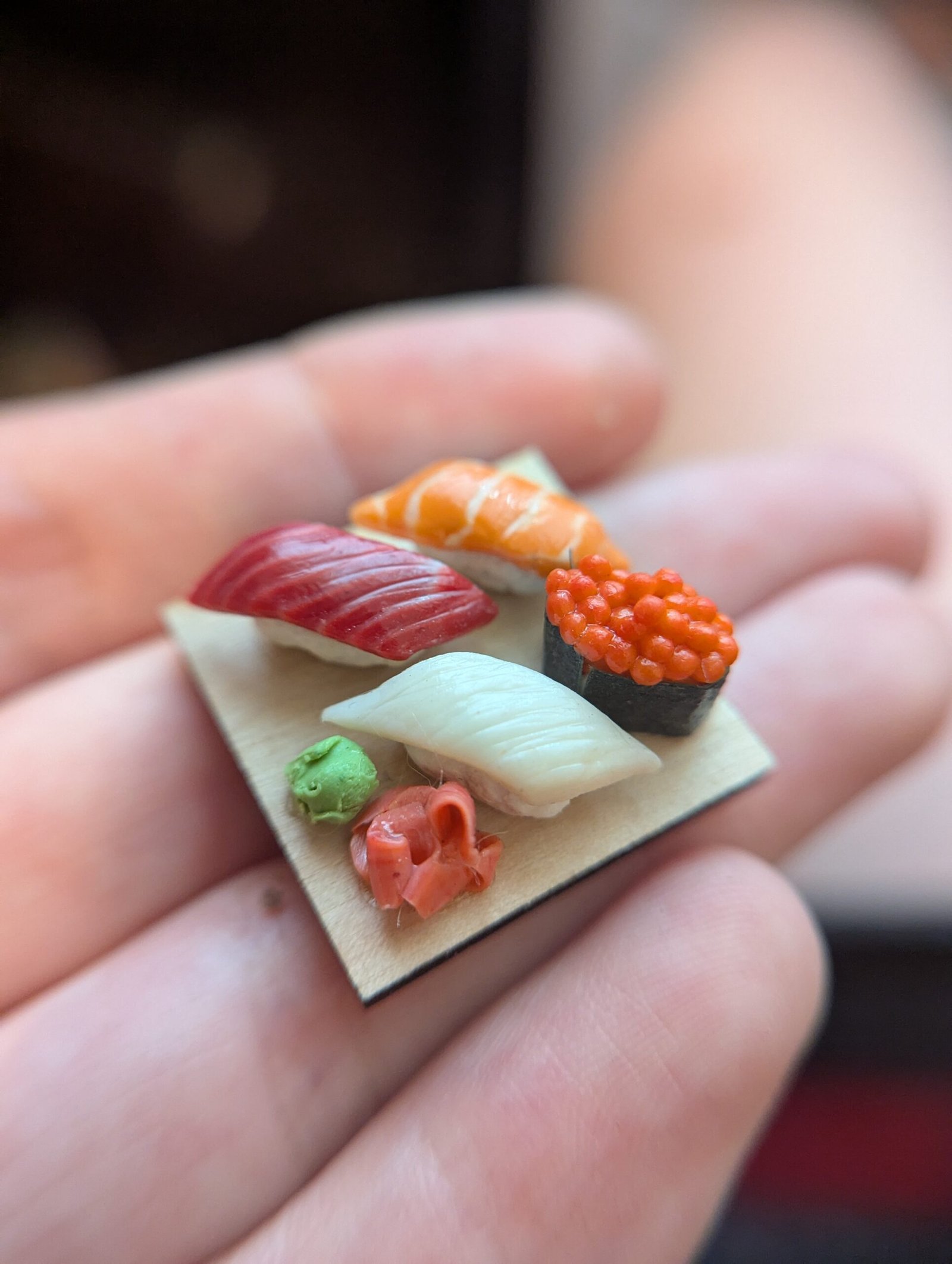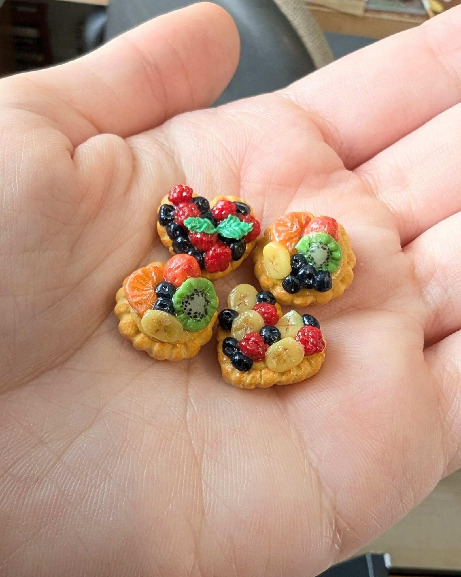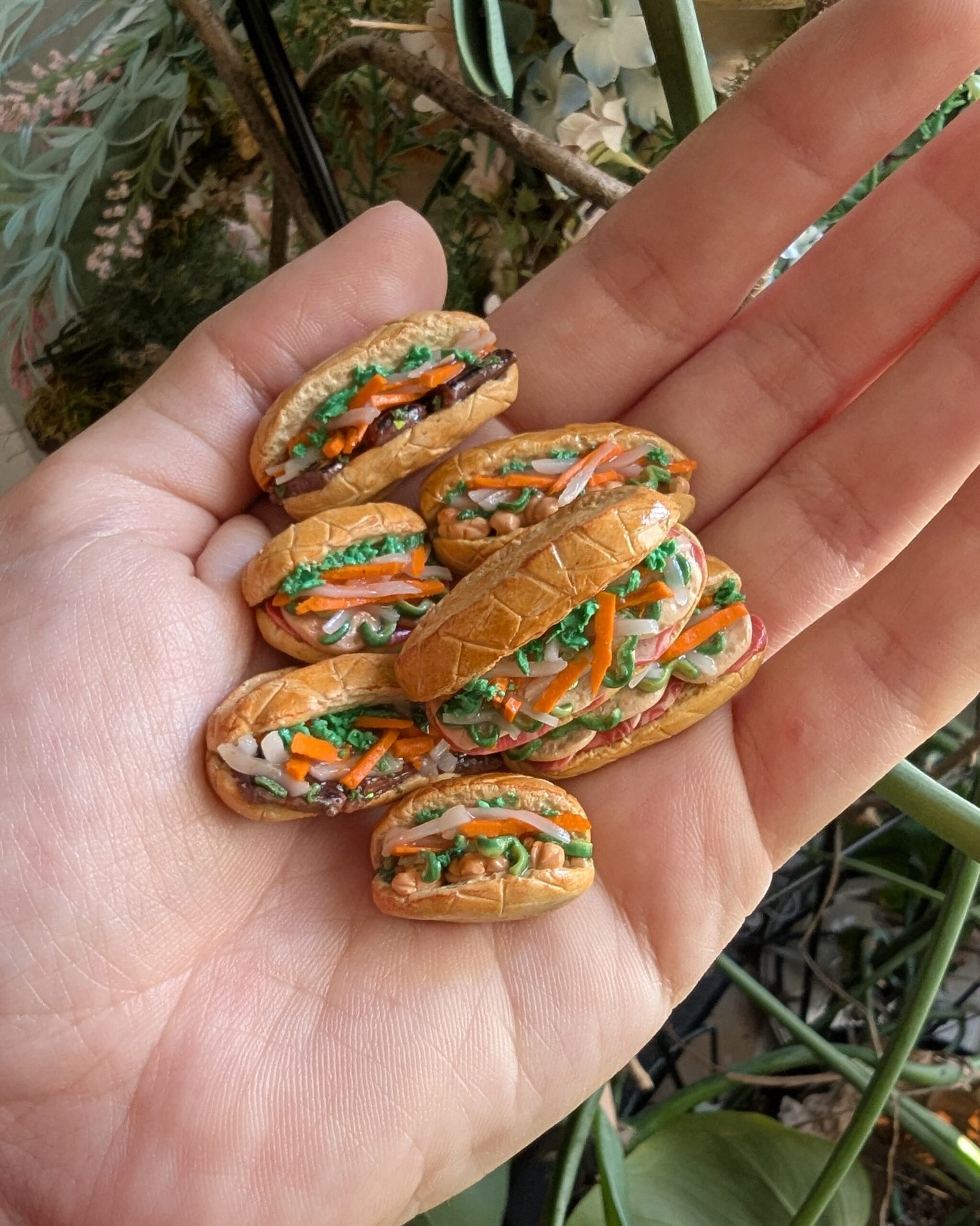 I make miniature clay food magnets and trinkets! I also do watercolor paintings and stickers.