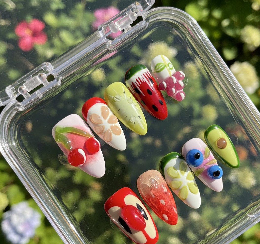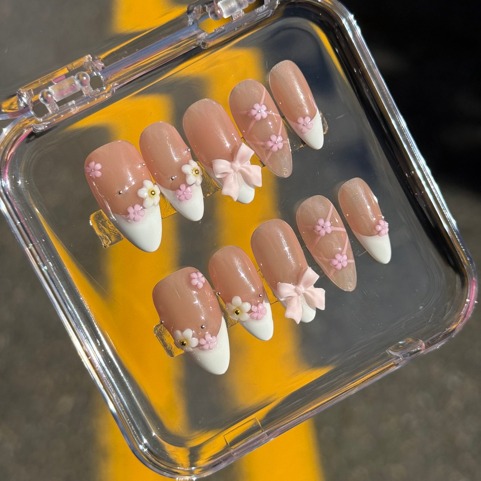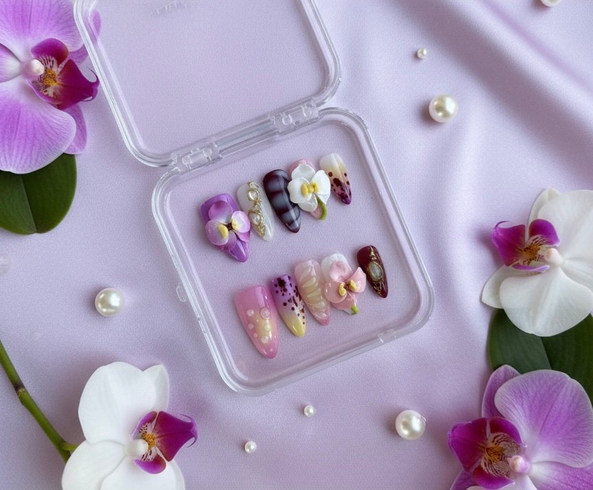 Our products are handmade 3D floral press-on nails designed for effortless style transformation. Each set allows customers to easily change their look without commitment—whether they want something elegant, playful, or bold. Every flower is individually crafted by hand, making each set one-of-a-kind. With lightweight comfort and reusable quality, our press-ons let wearers showcase their unique beauty anytime, anywhere.